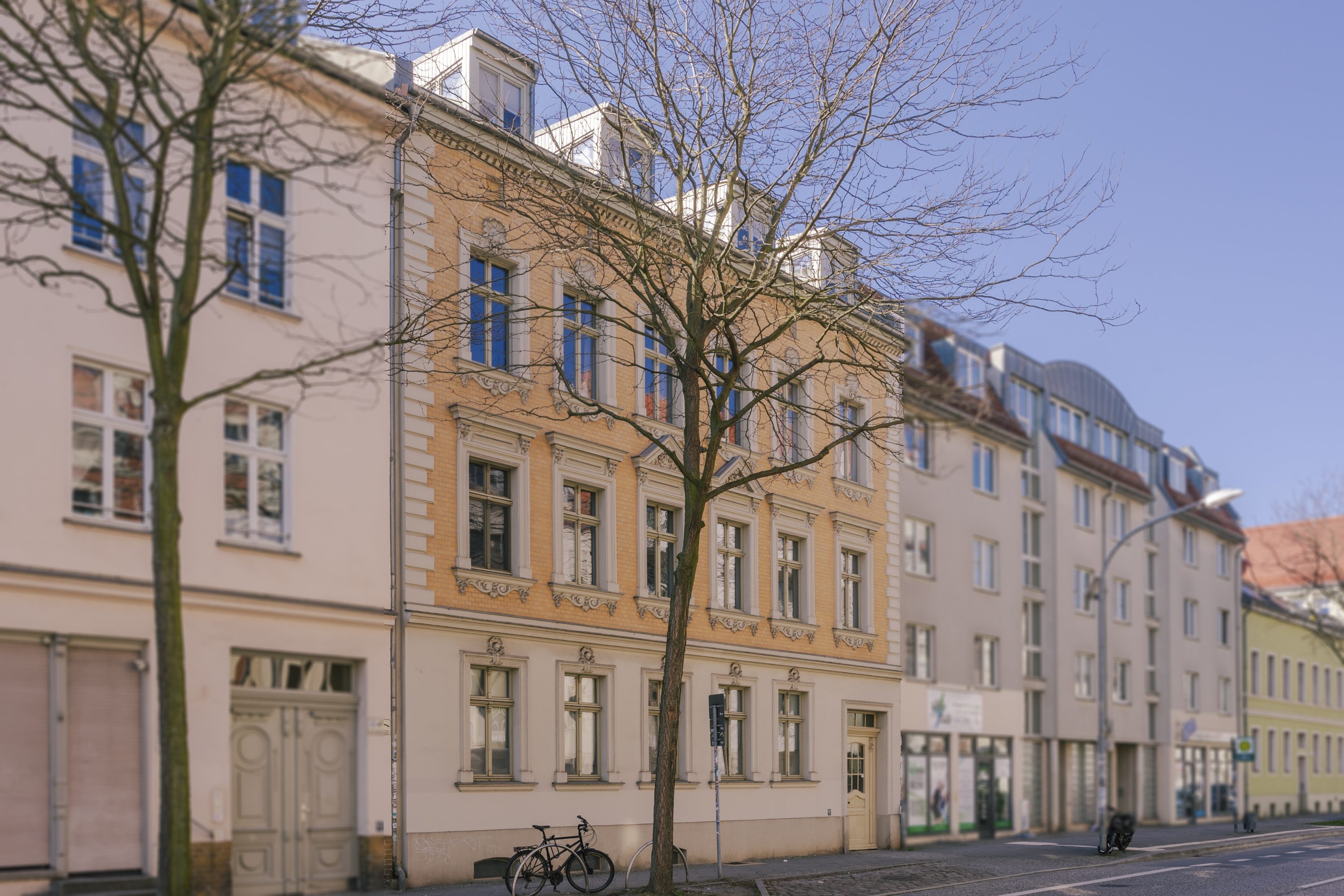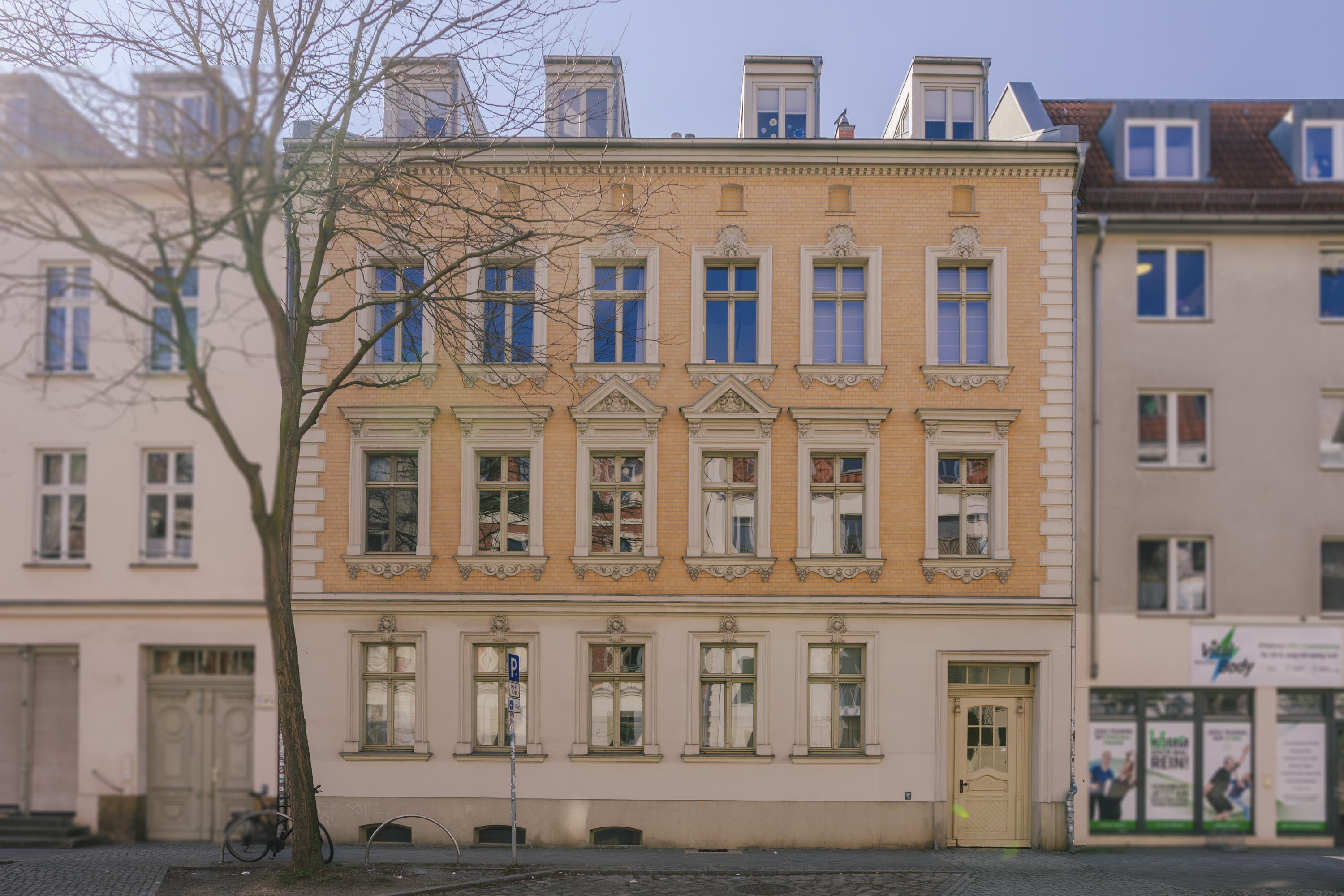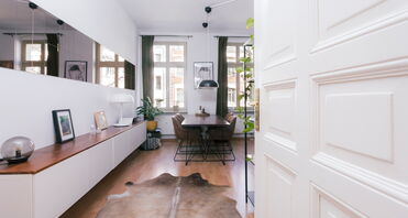 Die Einheit befindet sich im 1. Obergeschoss und überzeugt durch einen durchdachten Grundriss sowie klassische Altbauelemente wie hohe Decken und große Fensterflächen.