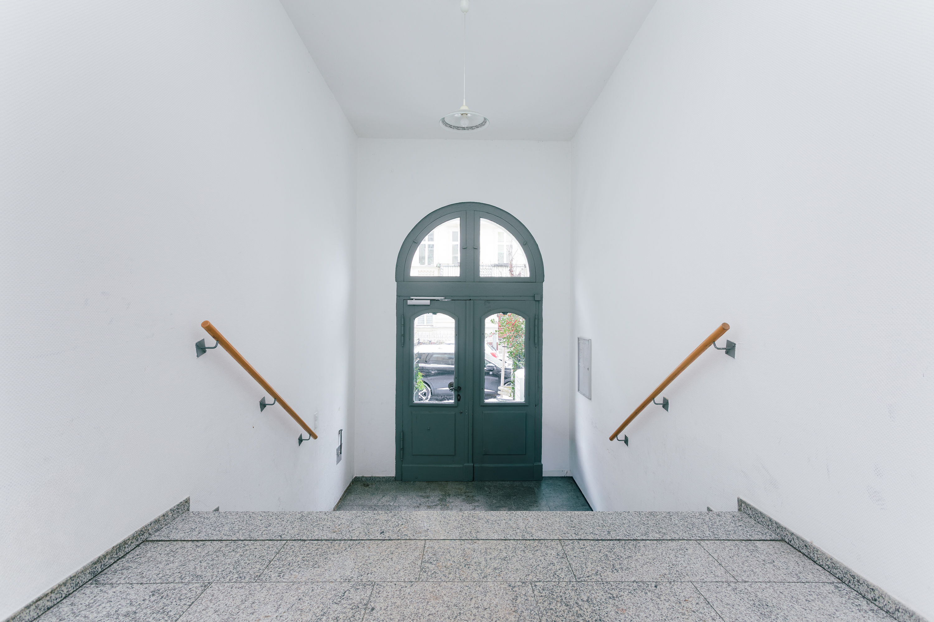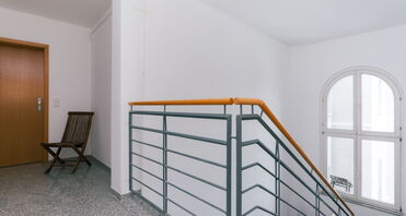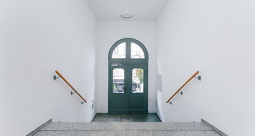 Der Zugang erfolgt über einen großzügigen, repräsentativen Eingangsbereich mit hohen Decken. Auch das Treppenhaus sowie der Flur des Gebäudes wurden modernisiert und präsentieren sich hell, gepflegt und einladend.