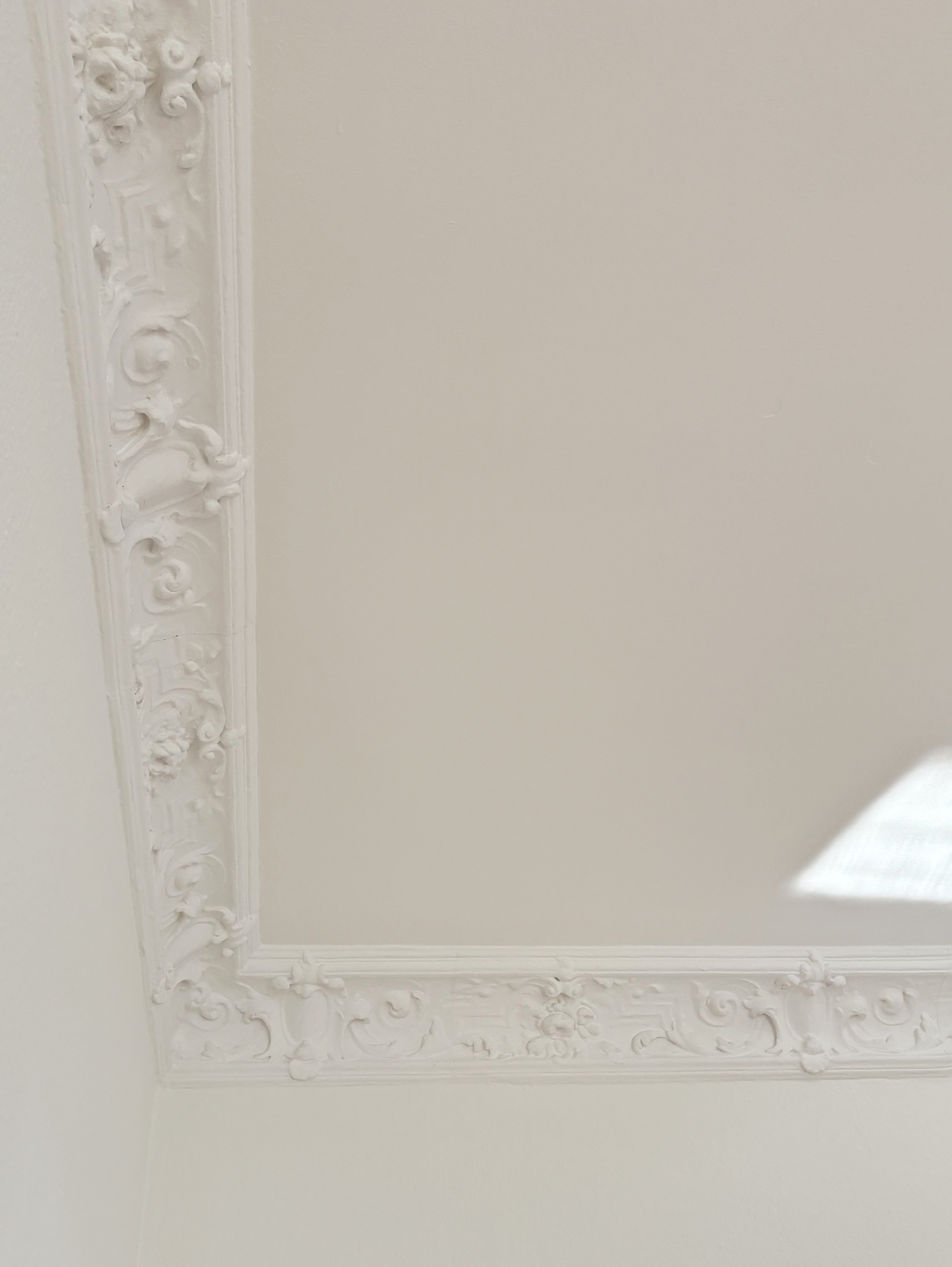 Rechts liegt das helle Wohnzimmer mit großen Fenstern und einem schönen Balkon. Der klassisch gestaltete und vollständig erhaltene Deckenstuck unterstreicht den Charme des Raumes. Eine gemütliche Couch sowie ein Esstisch würden hier perfekt Platz finden – das Wohnzimmer bildet das Herzstück der Wohnung und ist ideal für gesellige Abende oder entspannte Stunden.