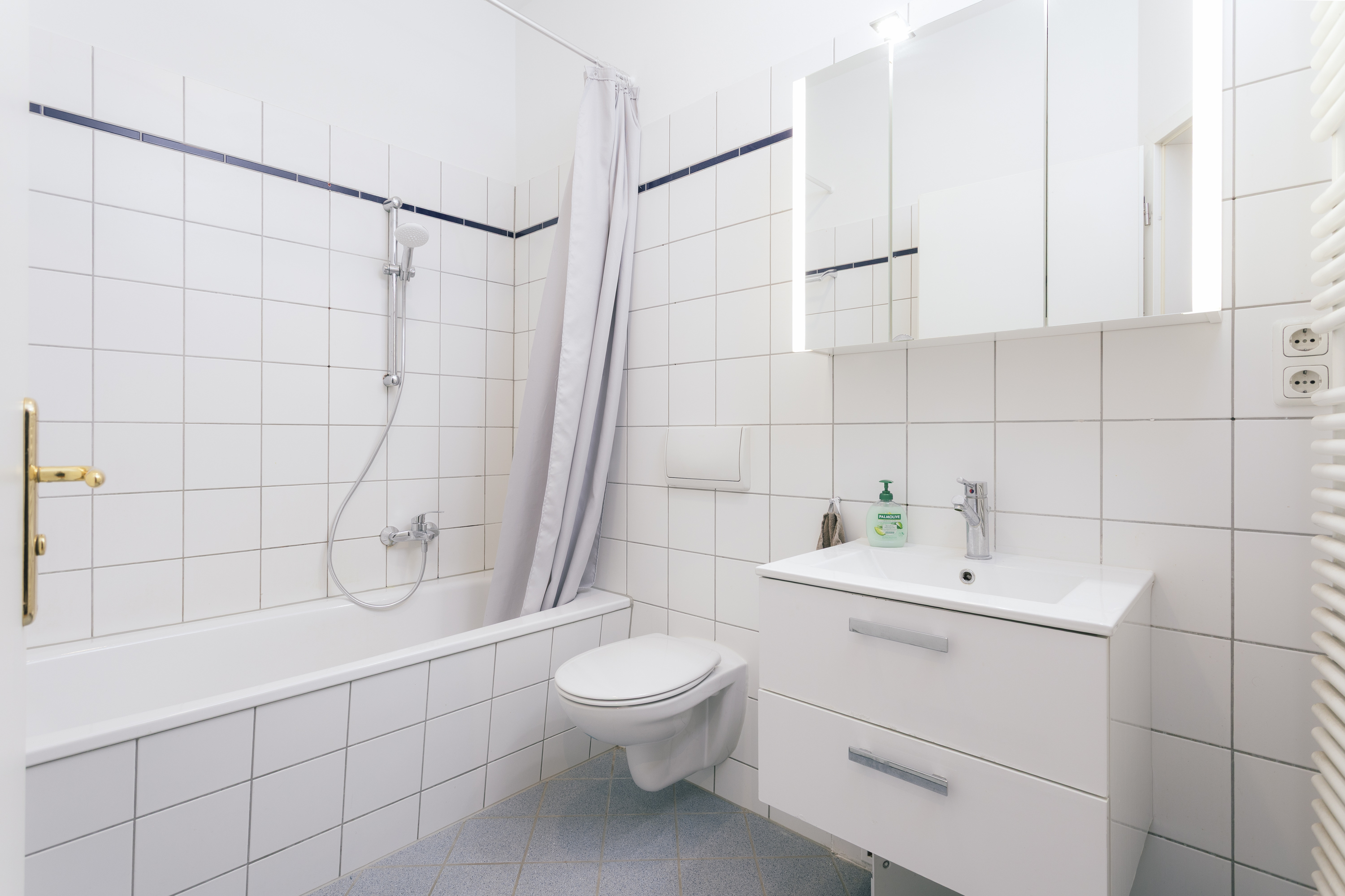- Fliesen im Bad und in der Küche.