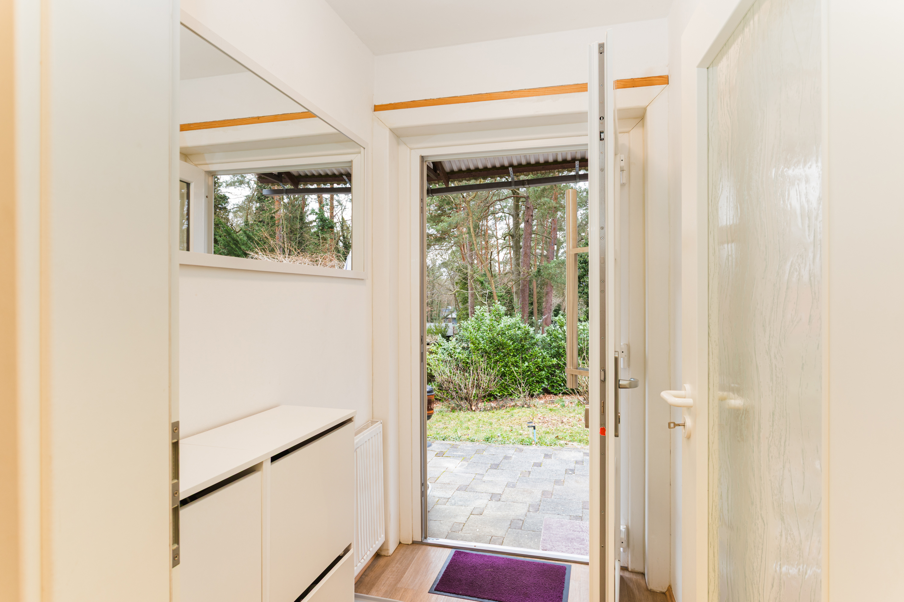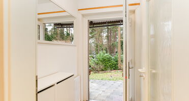 Dieses charmante Haus in Holzständerbauweise bietet auf ca. 63 qm Wohnfläche eine durchdachte Raumaufteilung mit drei Zimmern. Der Zugang erfolgt über eine gemütliche Süd-West-Terrasse, die ganzjährig zum Verweilen einlädt. Durch die moderne Eingangstür betritt man einen kompakten Windfang, der Platz für eine kleine Garderobe bietet.