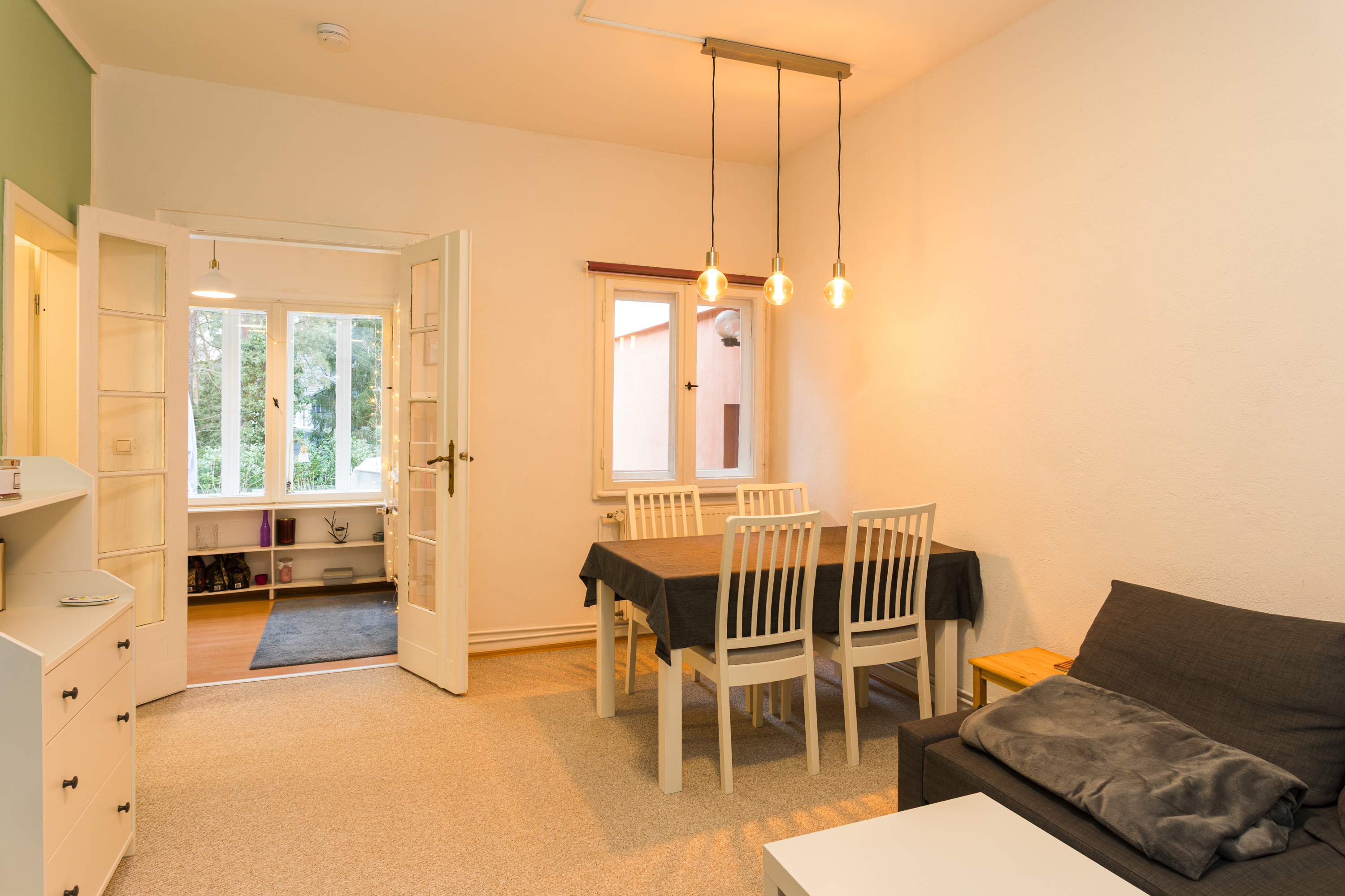 - Teppichboden im Wohnzimmer und dem großen Büro.