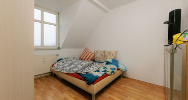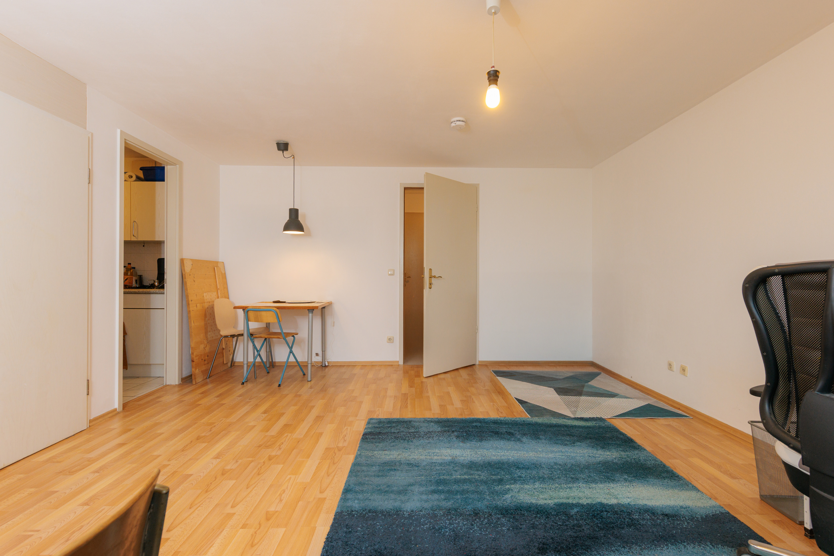 Im Wohnzimmer ist ausreichend Platz für eine gemütliche Sitzecke, einen kleinen Esstisch sowie einen Homeofficebereich. Das Schlafzimmer bietet neben den Wandschrankfächern nicht nur Platz für ein Bett, sondern auch für weitere Schrankstellflächen.