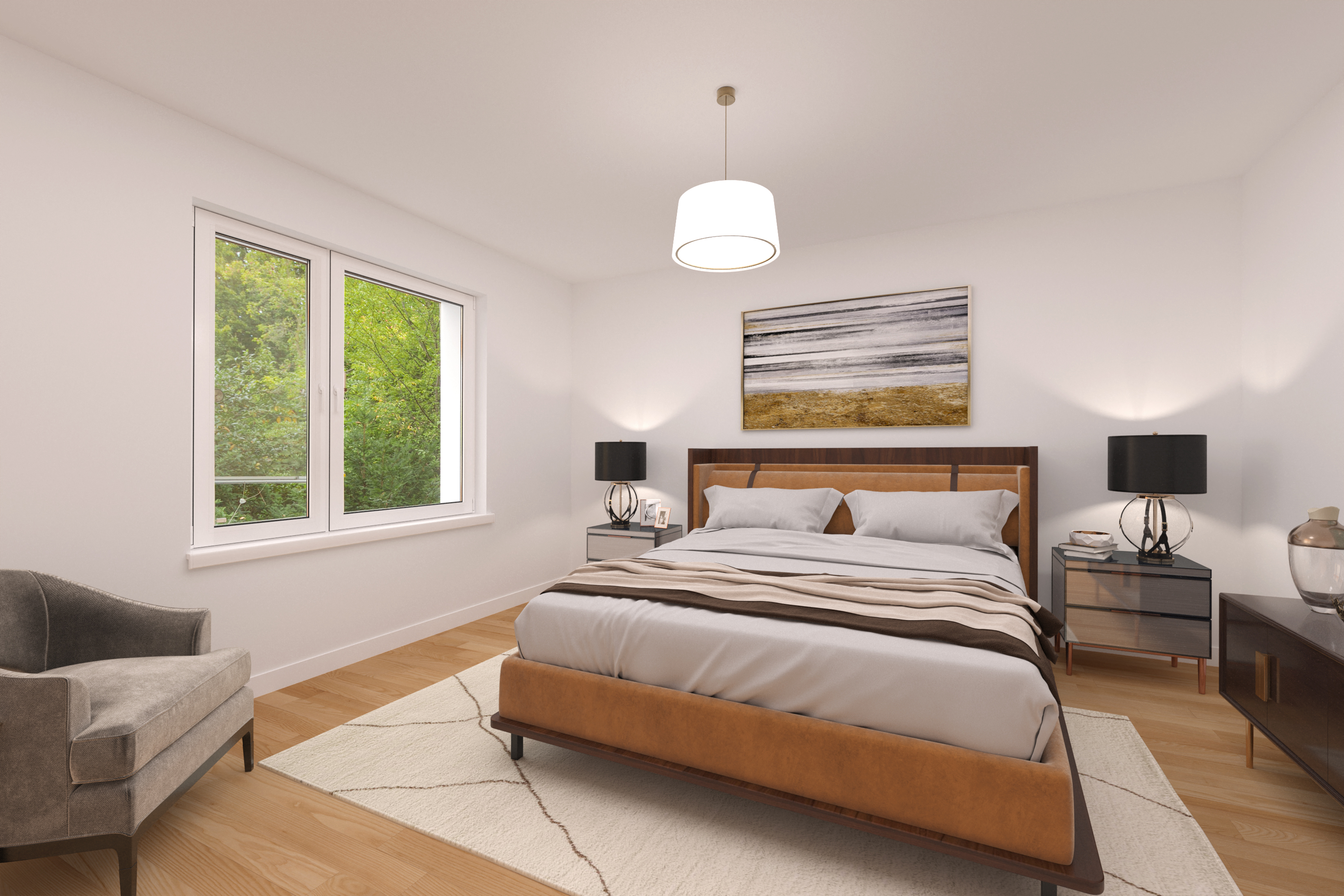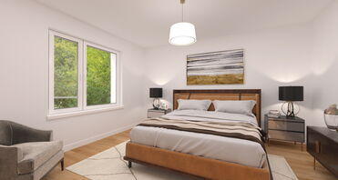 - PVC-Boden in einem Schlafzimmer und Laminatboden im anderen Schlafzimmer.