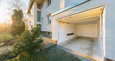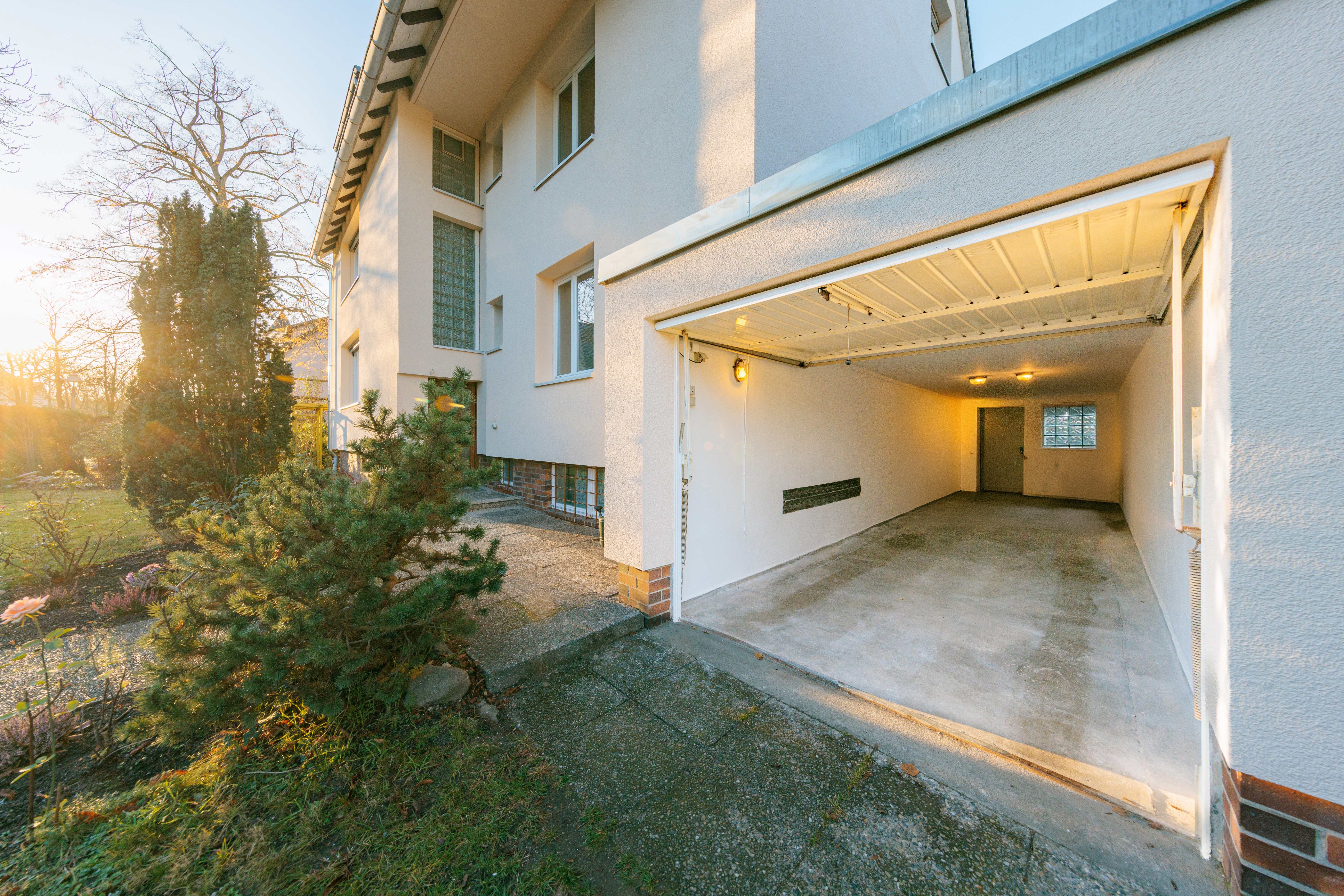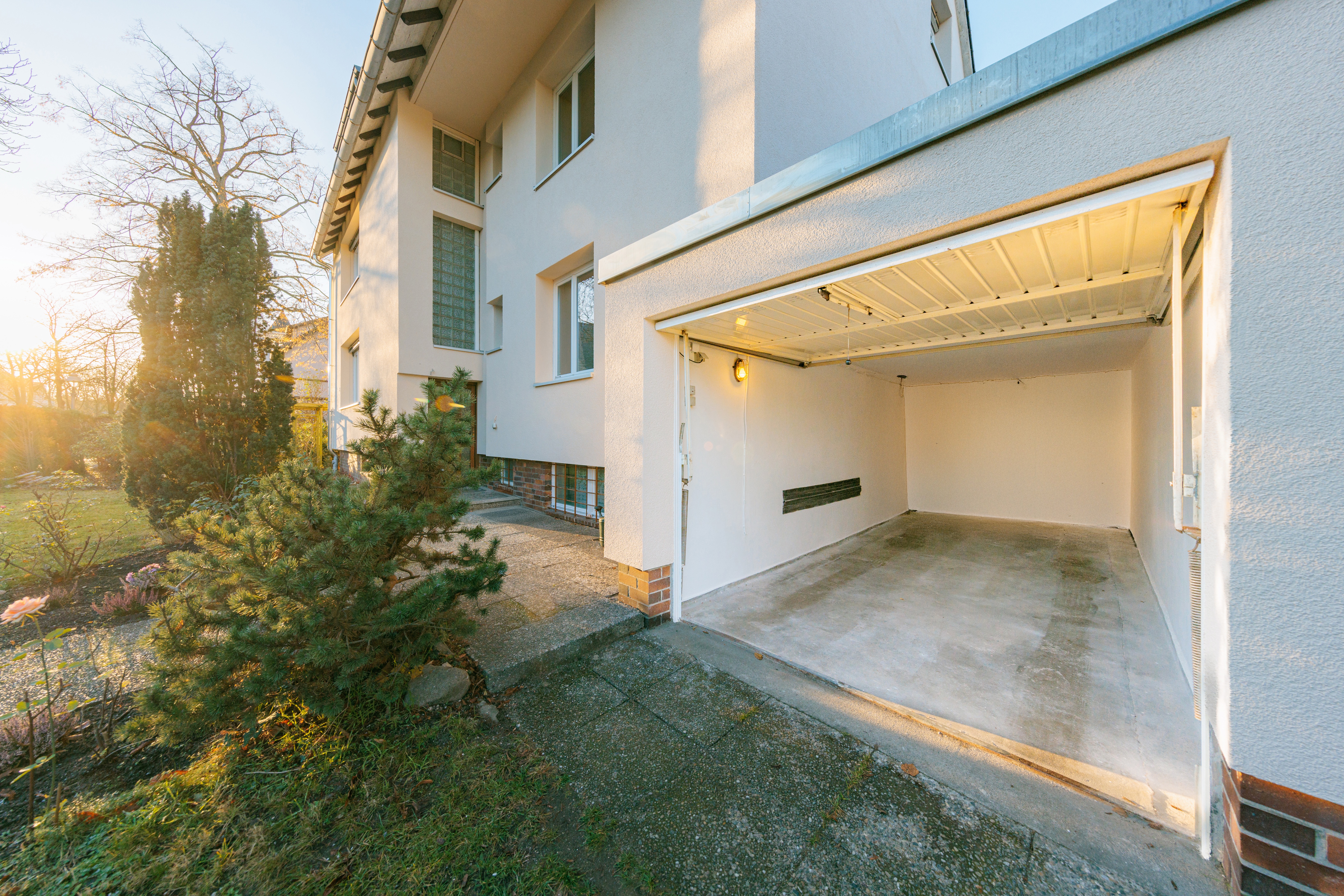 Eine Garage kann optional erworben werden. Der hintere Bereich wird künftig baulich getrennt und steht allen Bewohnern gemeinschaftlich für Fahrräder oder Gartengeräte zur Verfügung.