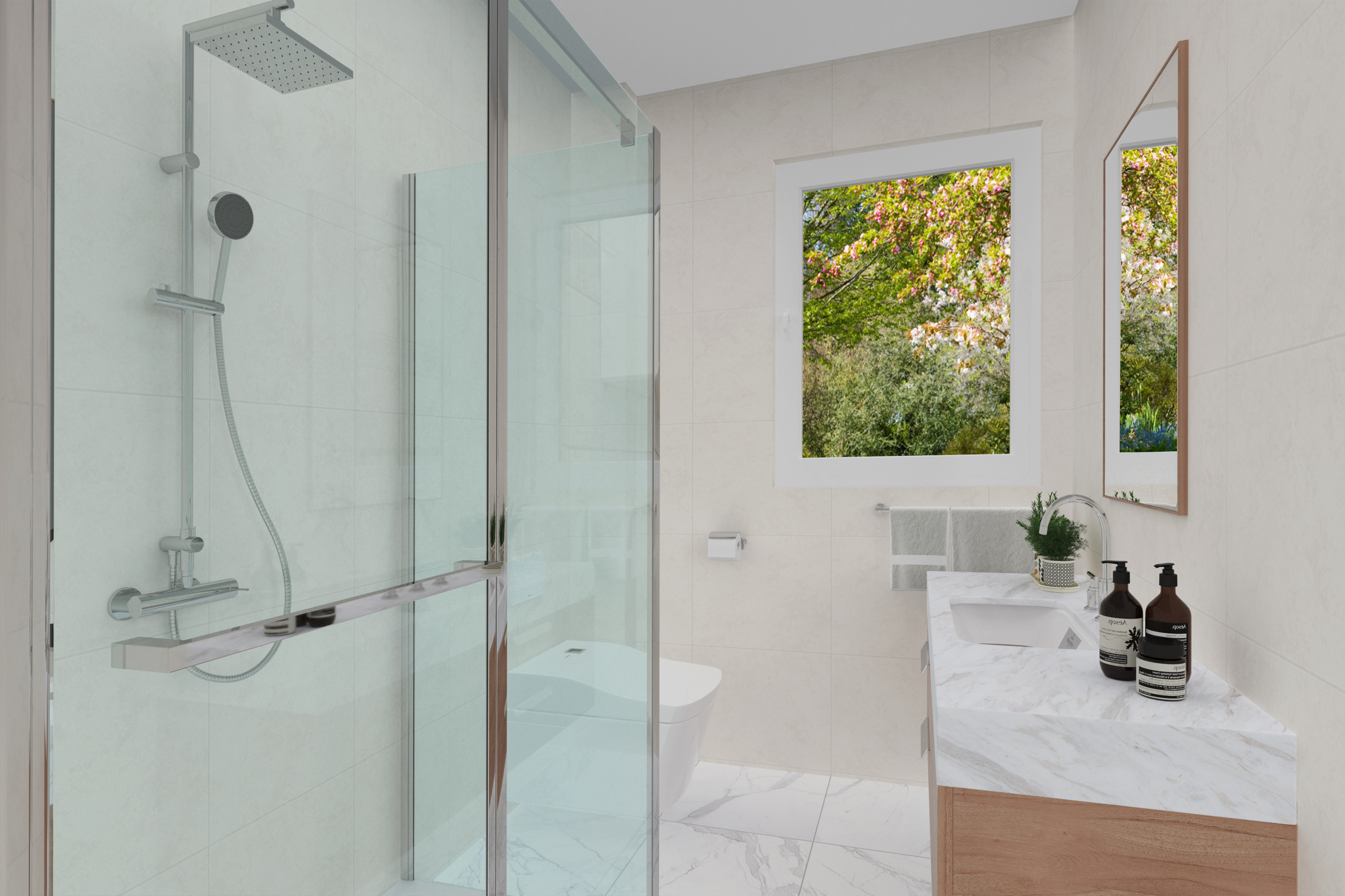 - Küche, Bad und Gäste-WC türhoch gefliest.