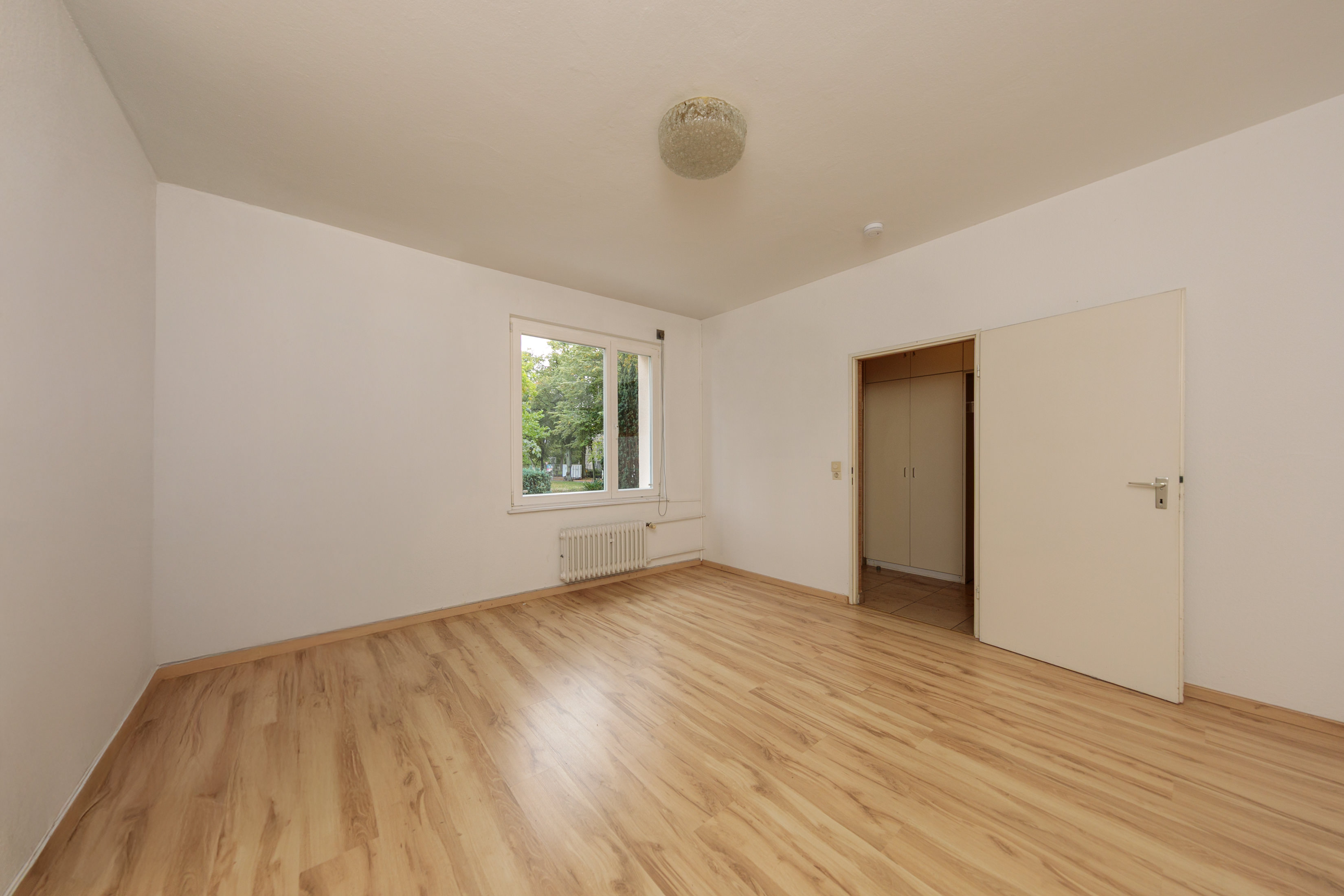 Im rechten Flurbereich ergänzt ein weiterer, großzügiger Einbauschrank die Garderobenfläche. Angrenzend liegt ein Gäste-WC mit Fenster. Gegenüber befindet sich ein weiteres Schlafzimmer mit rund 16,80 m² und nahezu quadratischem Schnitt – perfekt als Kinder-, Gäste- oder Arbeitszimmer nutzbar.