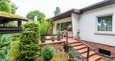 Objektbeschreibung: Attraktiver 70iger Jahre-Bungalow (Typ Bitterfeld) auf Eckgrundstück mit Souterrain und großem Garten