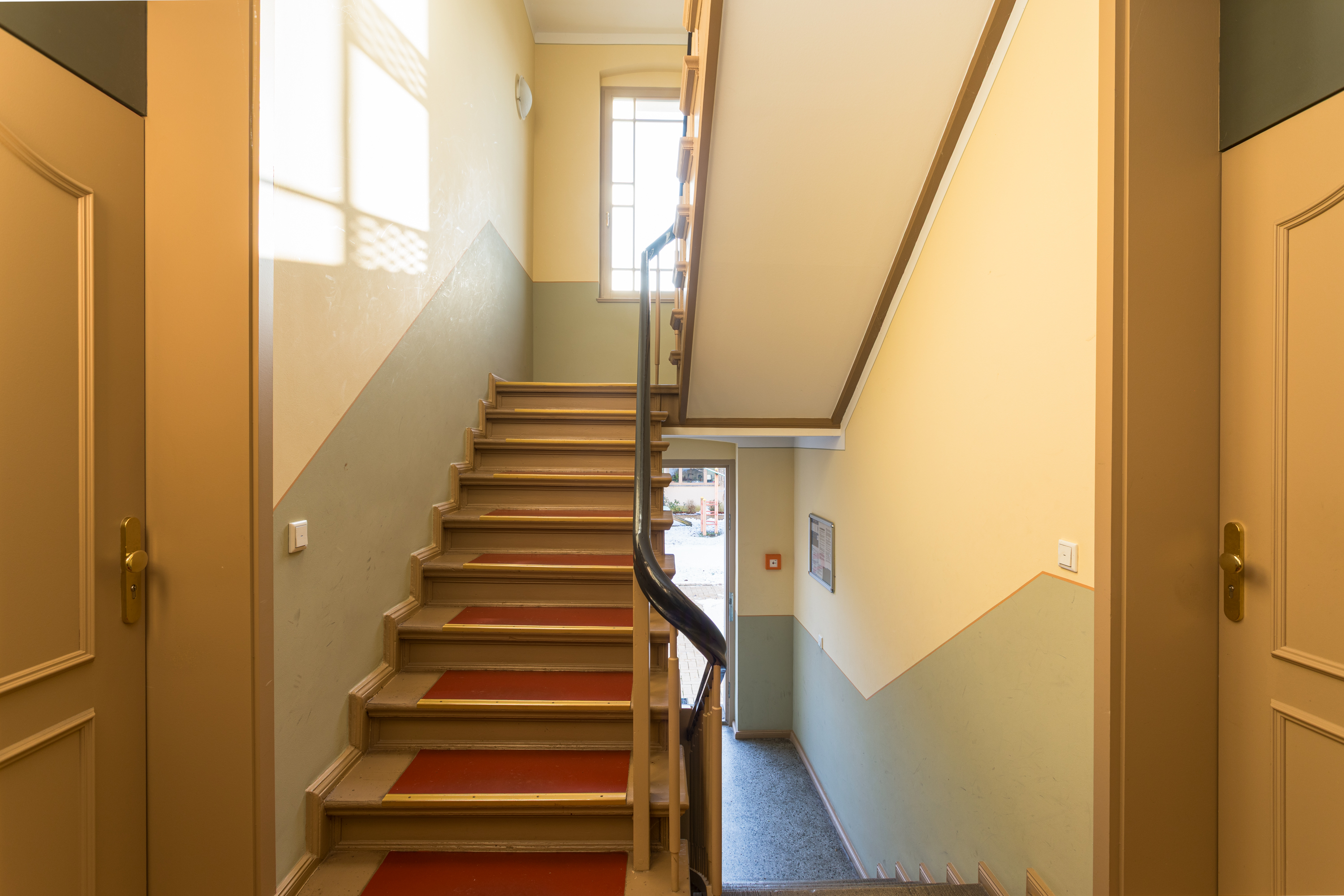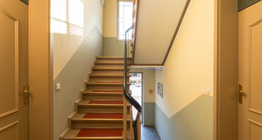- Historisches Treppenhaus aus Holz.