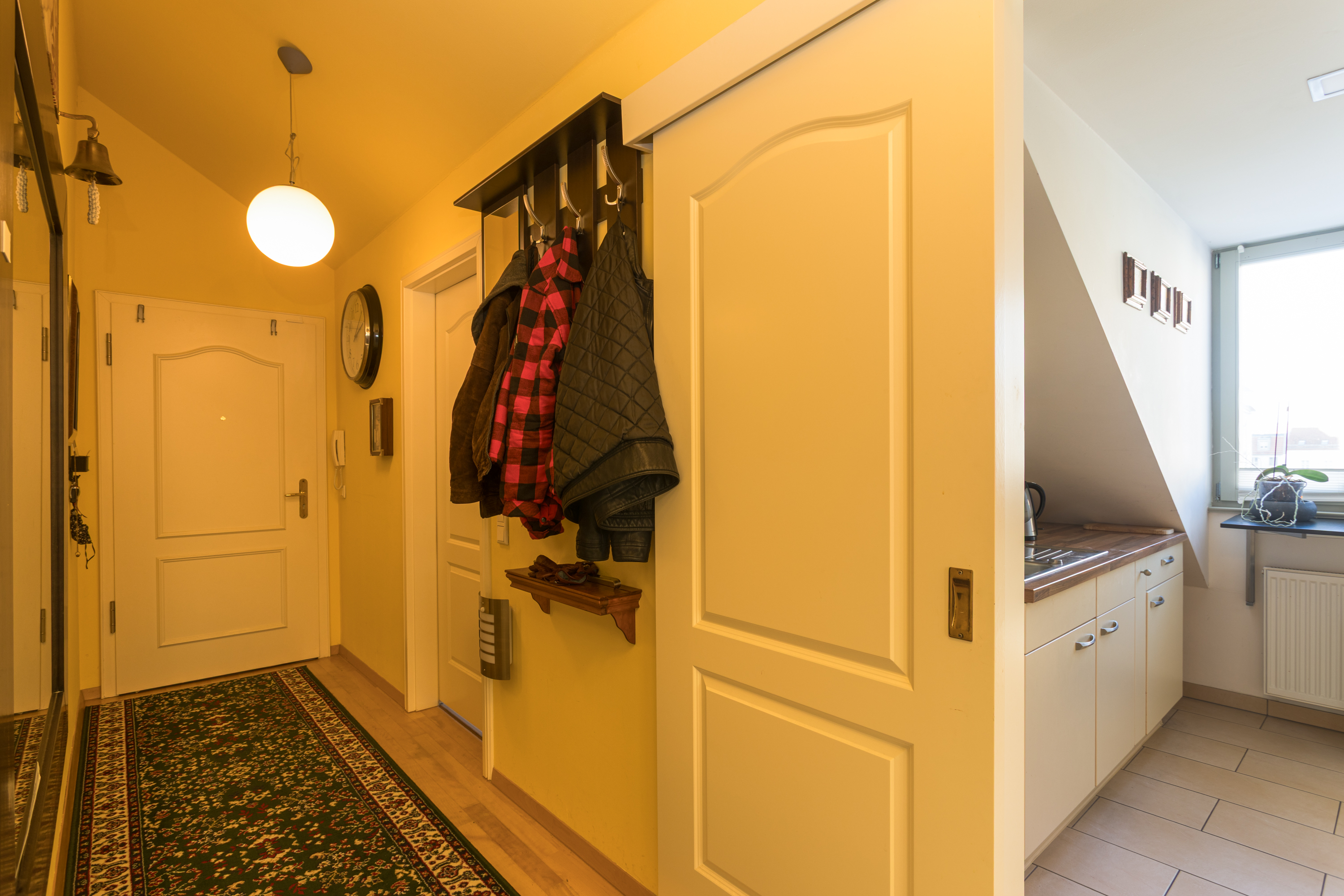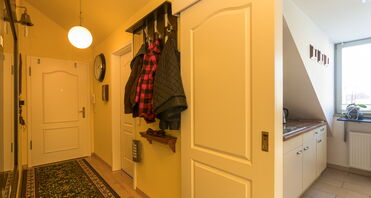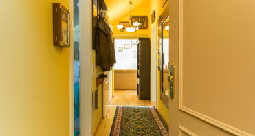 Bereits beim Betreten der Wohnung empfängt Sie ein Flur mit hochwertigem Holzfußboden, der den warmen Charakter der Wohnung unterstreicht.