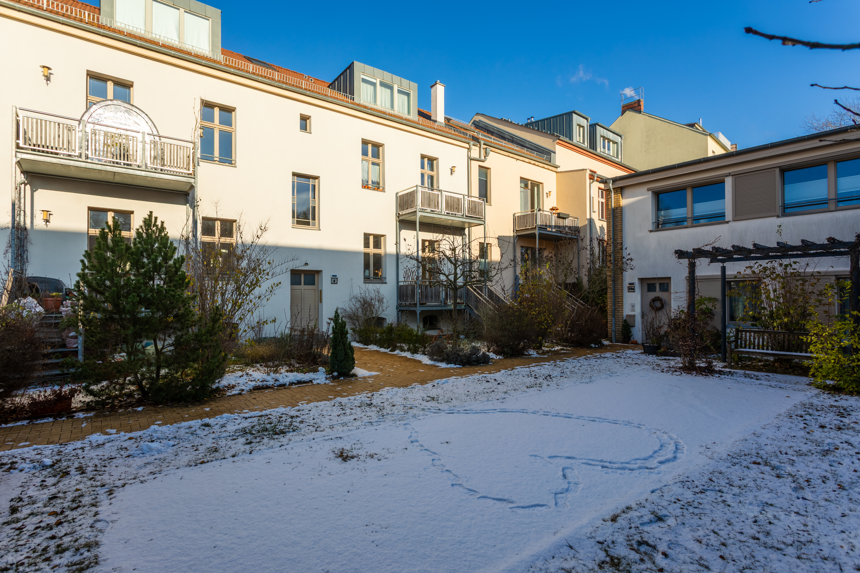 In einem aufwendig sanierten Ensemble aus historischem Altbau mit Remise entsteht ein harmonisches Zusammenspiel aus Tradition und Moderne. Der prachtvolle Gründerzeitaltbau wurde umfassend saniert und durch den Neubau der Seitenflügel sowie des Hinterhauses ergänzt.