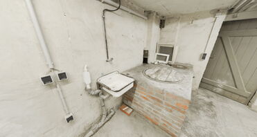 - Waschkeller mit Waschmaschinenstellplatz und historischem Waschofen.