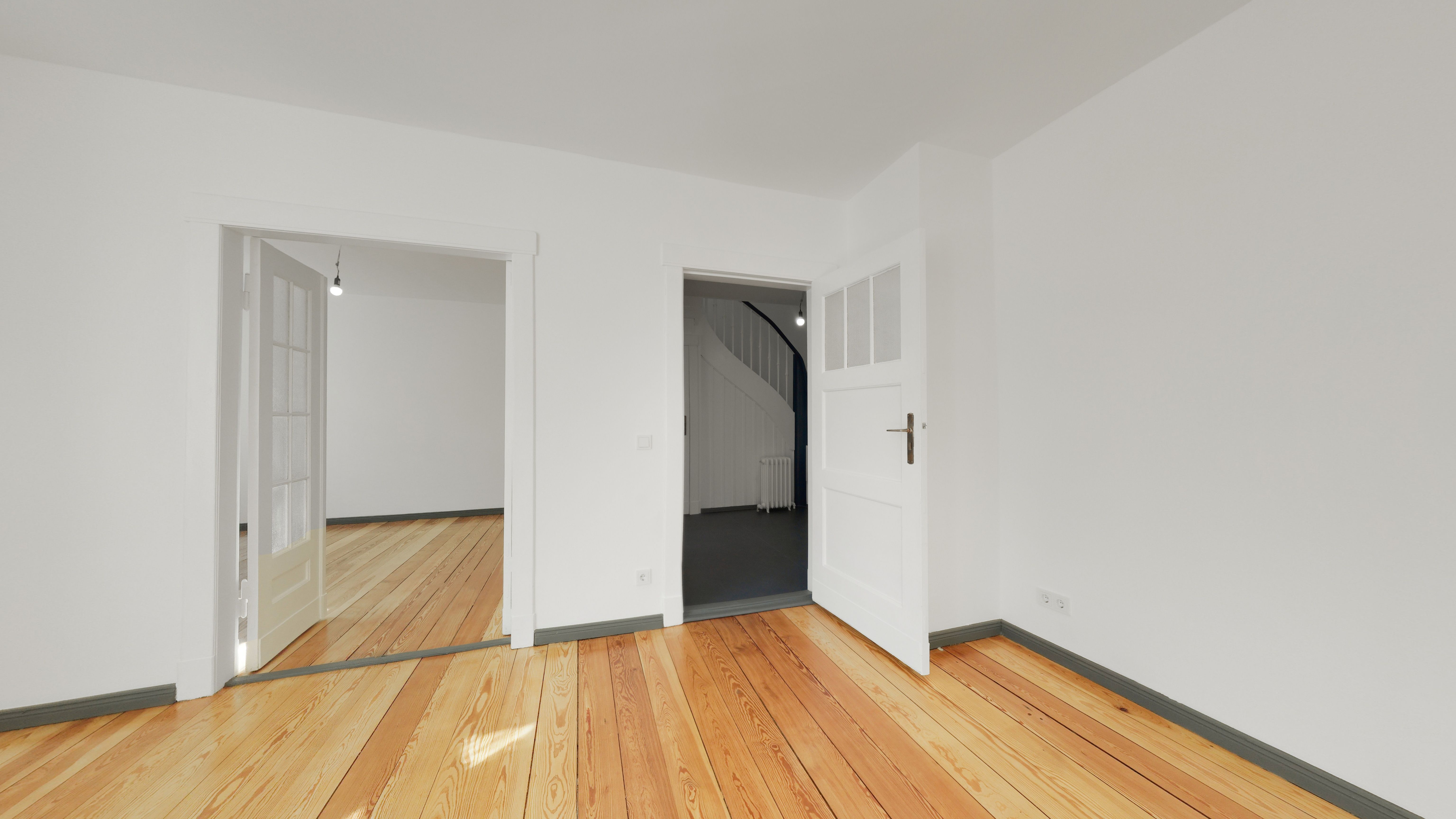 - Aufgearbeitete überwiegend originale Holzfußleisten.