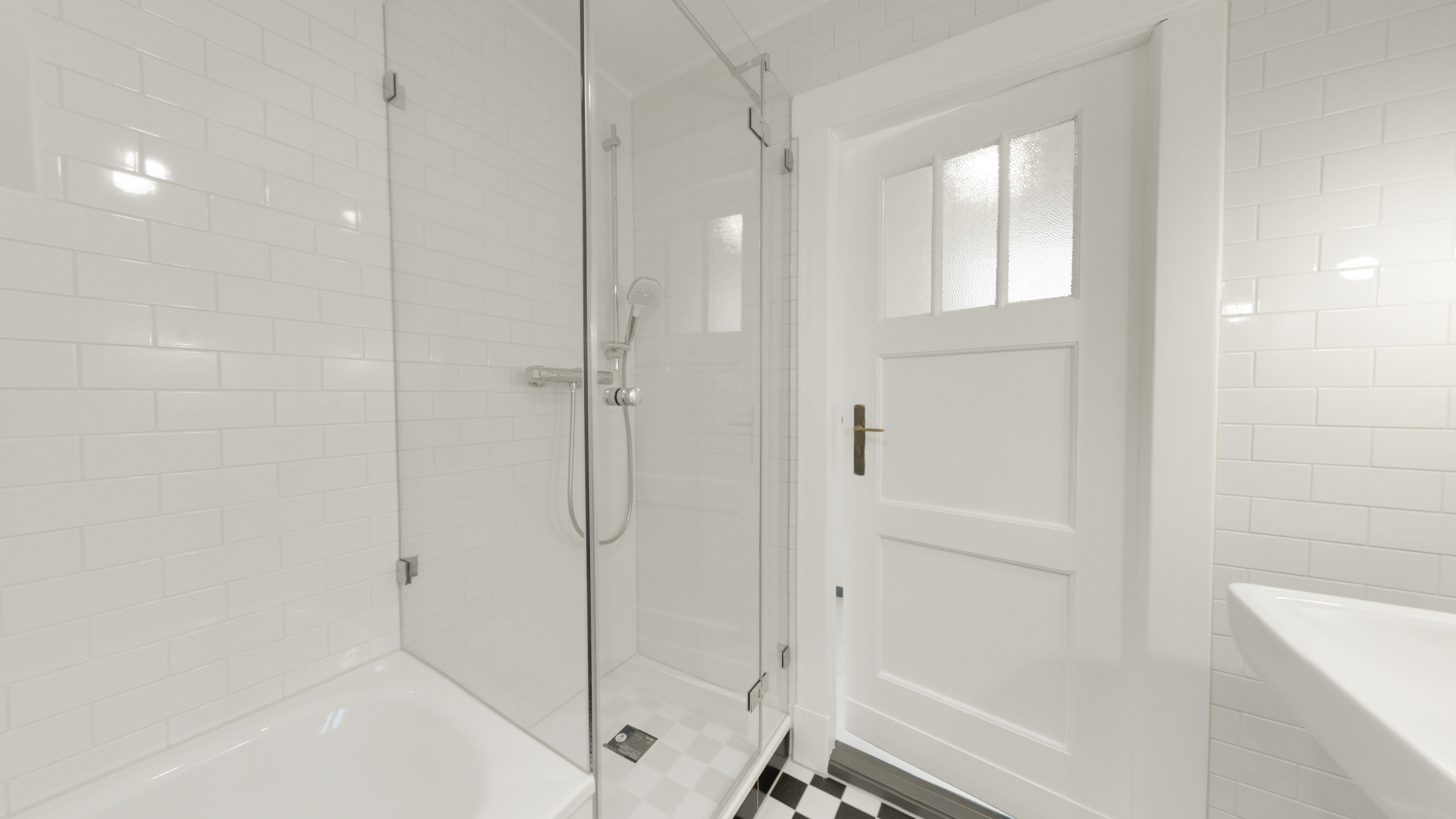 - Wände im Bad und Gäste-WC mit Fliesen im Metrostil halbhoch gefliest.
